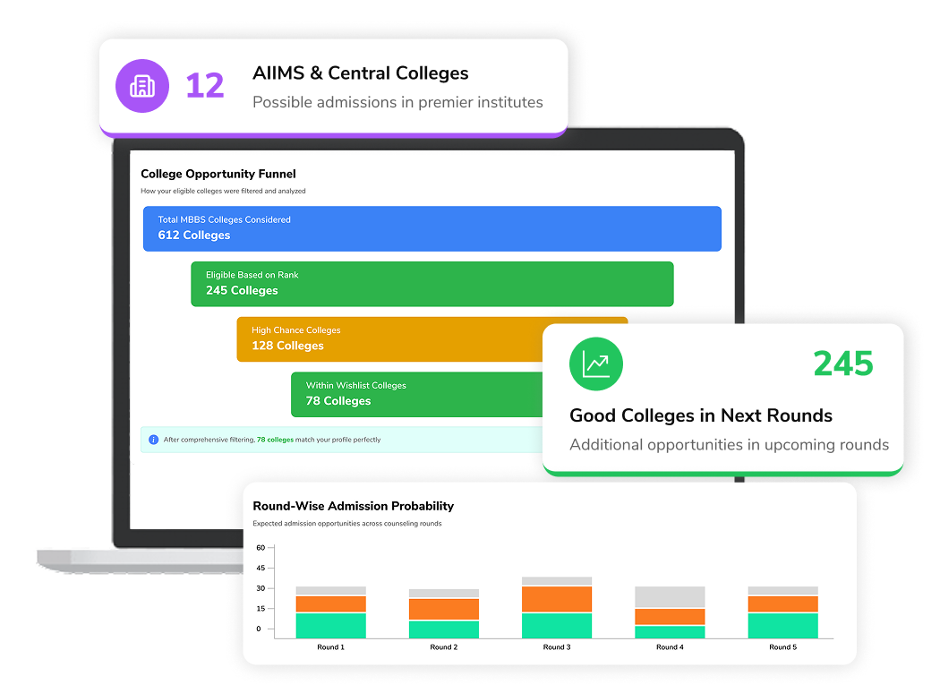 Get accurate college predictions, state-wise insights, and round-wise cutoff trends to plan your admission journey with confidence.